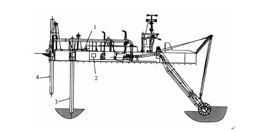 6--挖泥頭,7--挖泥船,8--絞車,9--臺(tái)車,10--左邊纜。