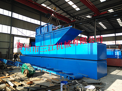本設(shè)備為旱地篩沙、洗沙一體機,每小時的處理量為200立方米,配用動力為50kw柴油發(fā)電機組。