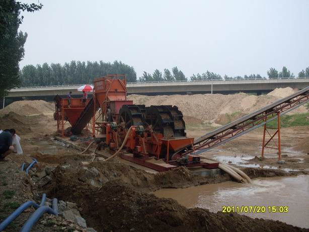 本設(shè)備由上料斗、上料傳送機、滾筒篩、制砂機、兩道輪式洗沙機組成,可用于風(fēng)化山沙、含鵝卵石和土比較多的河沙等物料的處理。每小時的處理量為60-80立方米。