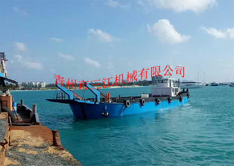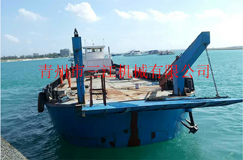 本設(shè)備是我公司于2017年6月份為馬爾代夫共和國制造的自航甲板駁,根據(jù)當(dāng)?shù)責(zé)o固定航道、水深不大于2米的具體工況情況設(shè)計定做,吃水深度2米,滿載航行速度8節(jié)。本設(shè)備適用于近海三級航區(qū)的車輛、人員、散雜貨、集裝箱等的接駁運輸。具體噸位,可根據(jù)客戶要求定做。
